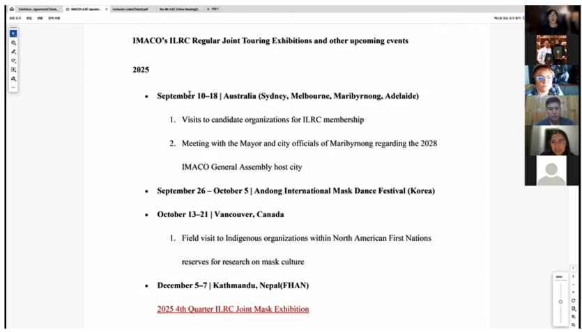 On September 24, 2025, the International Mask Arts & Culture Organization (IMACO) held the 4th online meeting of its International Local Research Centers (ILRC). The meeting was attended by directors from key centers in Kathmandu (Nepal), Tobatí (Paraguay), Paris (France), four cities in Italy, and Valladolid (Spain), all of which have confirmed special exhibitions and performance tours through agreements with IMACO for 2025 and 2026.